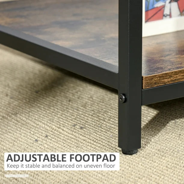 Industrial 2-tier Coffee Table with Storage Shelf, Rustic Brown, Wood Look Accent Furniture with Metal Frame