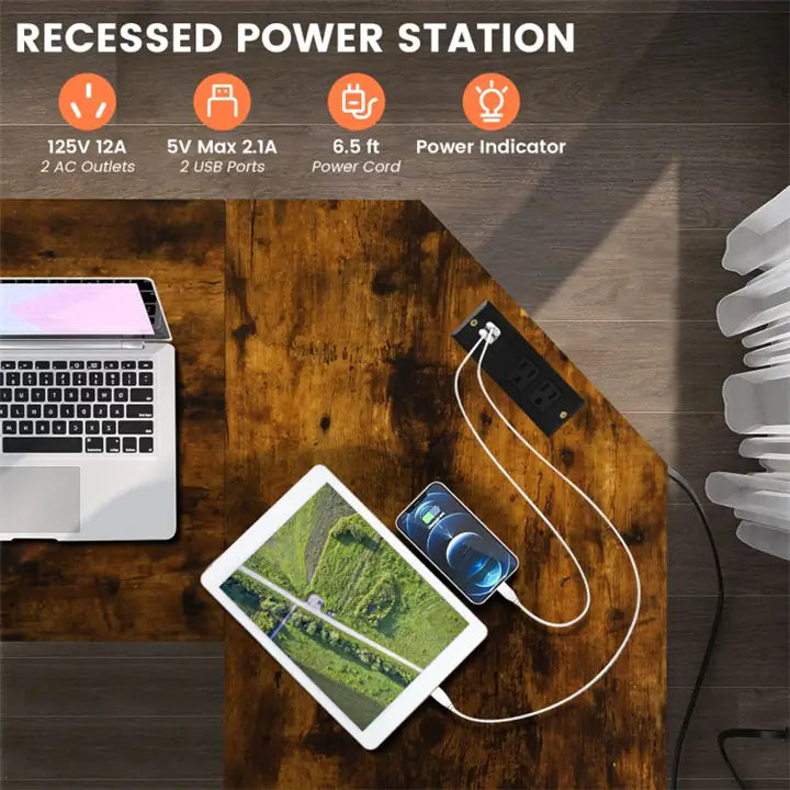 L Shaped Computer Desk with 2 Outlets and 2 USB Ports