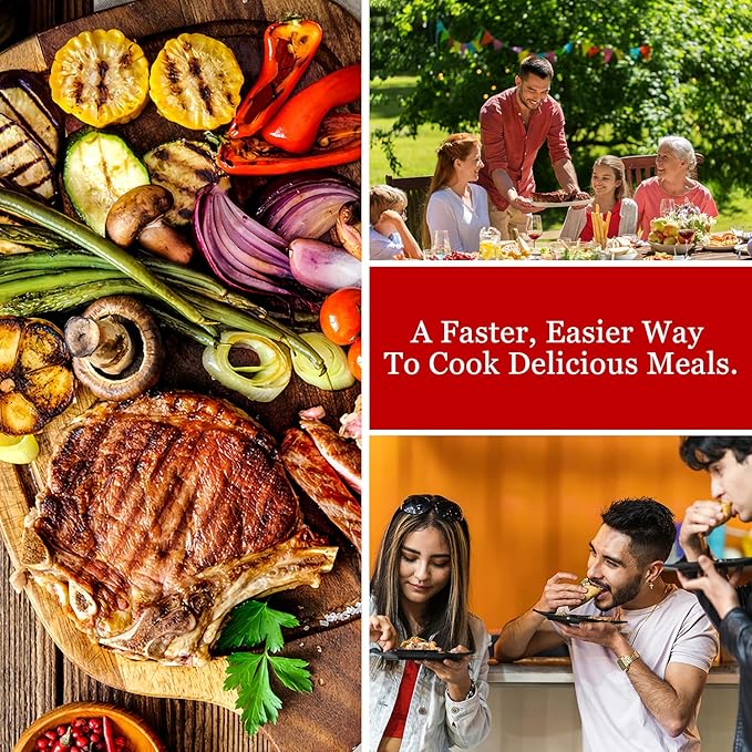 - 🍗Family-sized Grill & Griddle Plate - Grill on our family size. The large non-stick grill and griddle plate offers plenty of room to fry eggs, pancakes, bacon and more or get the perfect result on steak and fish, and other meal foods and comes with a tempered glass lid.