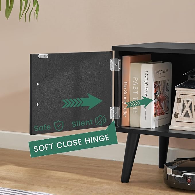 - ♻️【Durable TV Console Table】Skeptical about the sturdiness and stability of this mid century TV stand? Don't worry! Although legs of this table are tapered and slender, enough stable and sturdy as they are made of solid wood(weight capacity up to 150 pounds), While extra mid-leg further enhance the stability and weight-bearing capacity of the entertainment center, with 100% No Wobble. So you can use it for years to come.